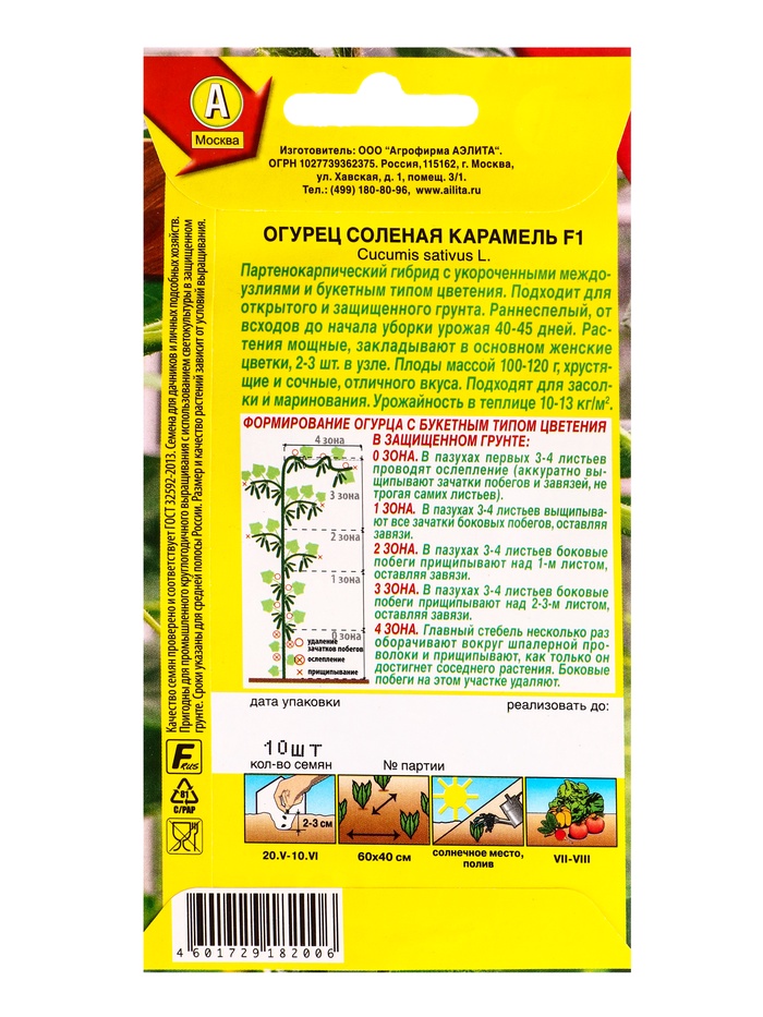 Семена Огурец «Соленая карамель», F1, партенокарпический, 10 шт., «Агрофирма АЭЛИТА» — Характеристики