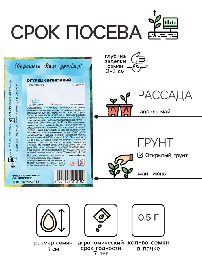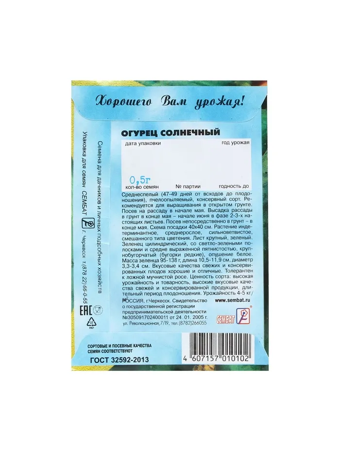 Высокая урожайность, длительное плодоношение и отличный вкус зеленцов! Классический среднеспелый, пчелоопыляемый сорт (47-49 дней от всходов до плодонощения) для выращивания в открытом грунте.