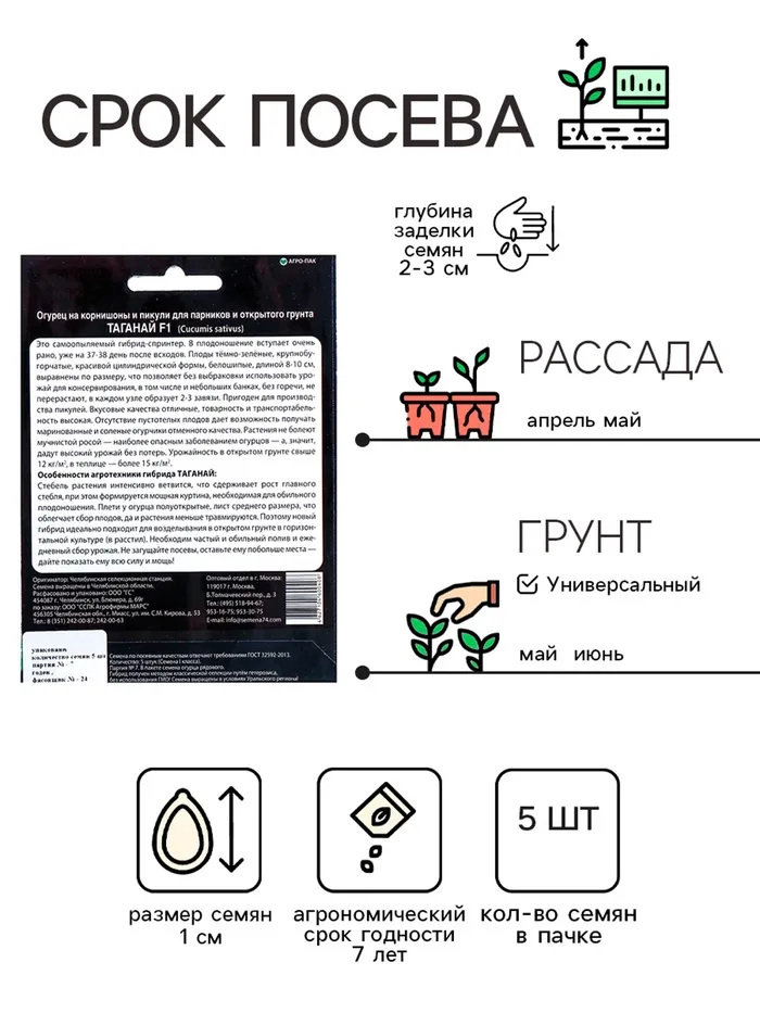 Семена Огурец "Таганай" F1 ультраранний, партенокарпический, для открытого грунта, 5 шт — Характеристики
