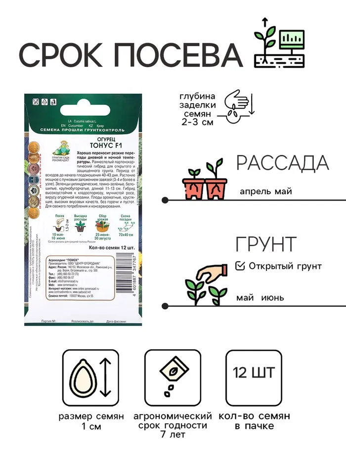 Семена огурца сорта Тонус помогут вам насладиться свежими и хрустящими огурцами, которые удачно подойдут для салатов и закусок. Эти семена идеально подходят для любителей свежих овощей, ценящих качественные и выносливые сорта для своих огородов.