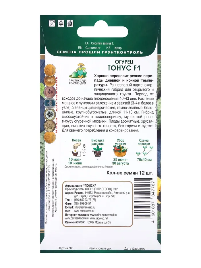 Семена Огурец Тонус, F1, 12шт — Характеристики