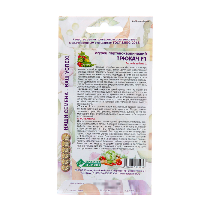 Семена Огурец «Трюкач», F1, 5 шт., «Евросемена» — Характеристики