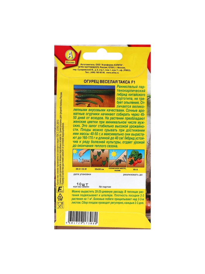 Семена огурца «Веселая такса» — идеальный выбор для любителей урожаев без лишних хлопот. Этот гибрид F1 подходит как для открытого, так и для закрытого грунта. Средний срок созревания позволяет наслаждаться спелыми плодами уже через 48-60 дней. Пчёлоопыляемый вид обеспечивает естественное опыление и стабильный урожай.