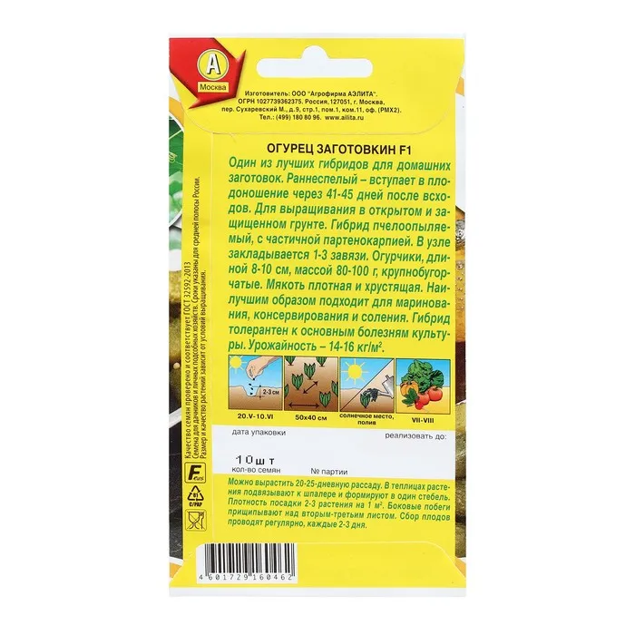 Семена Огурец "Заготовкин", F1, 10 шт — Характеристики