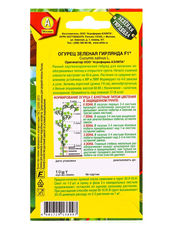 Семена Огурец «Зеленая гирлянда», F1, партенокарпический, 10 шт., «Агрофирма АЭЛИТА» — Характеристики