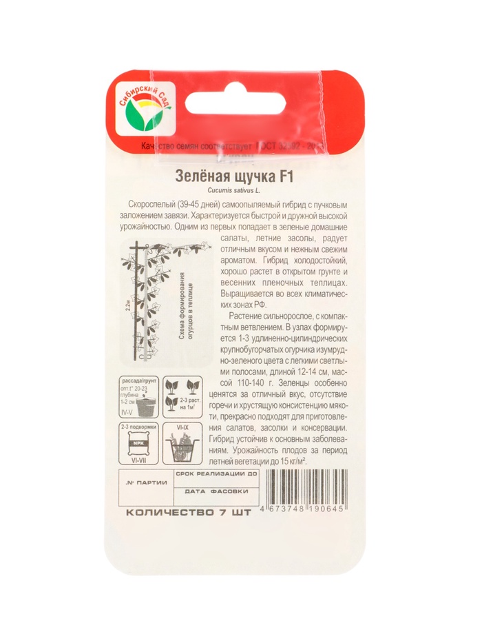 Семена Огурец Зеленая щучка F1 7шт — Характеристики