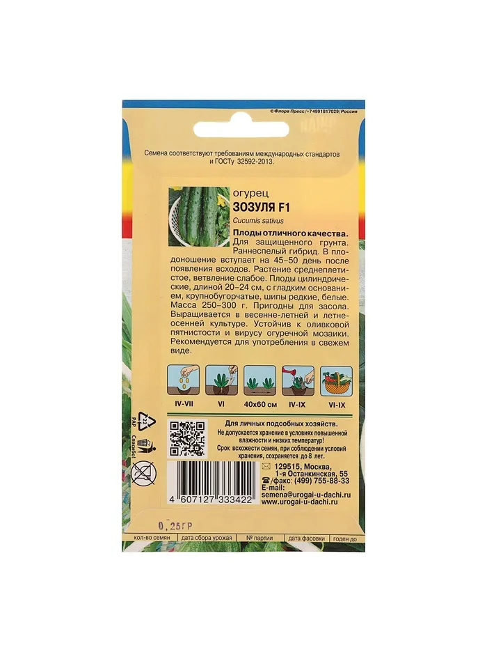 Семена Огурец "Зозуля" F1,0,25 гр — Характеристики