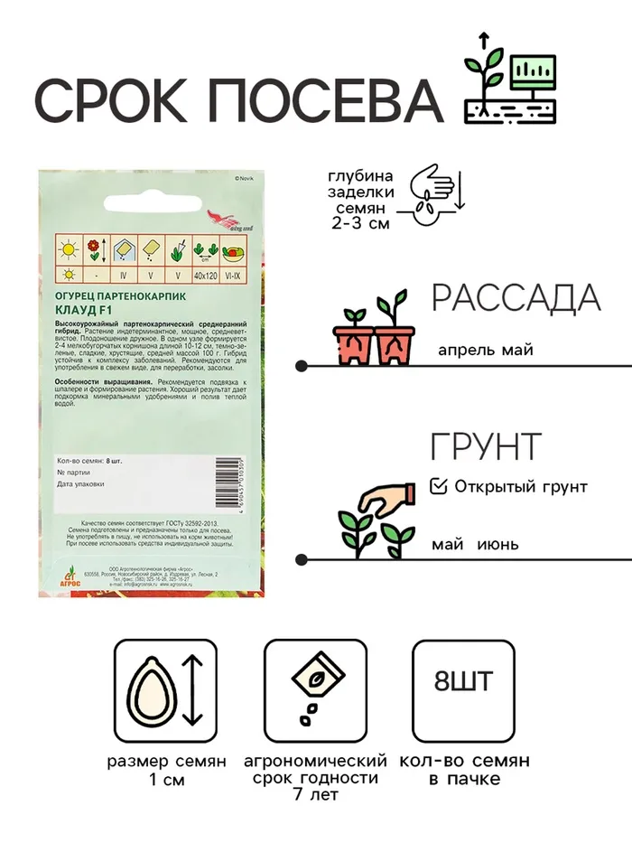 Посев и уход не требуют сложных манипуляций. Благодаря гибриду «Клауд F1» вы получите устойчивый урожай, не зависящий от капризов погоды.