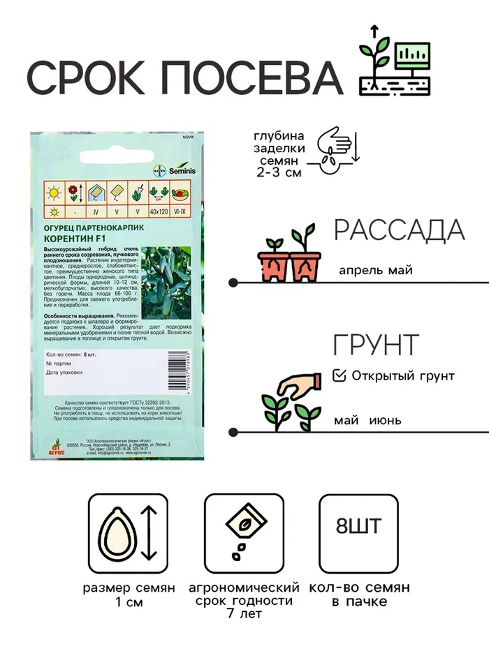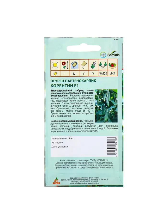 Семена Огурец"Корентин"F1 8шт* Seminis — Характеристики