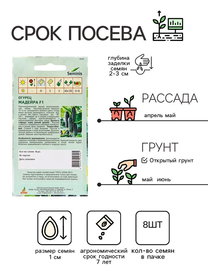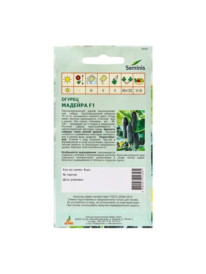 Семена Огурец"Мадейра"F1 8шт* Seminis — Характеристики