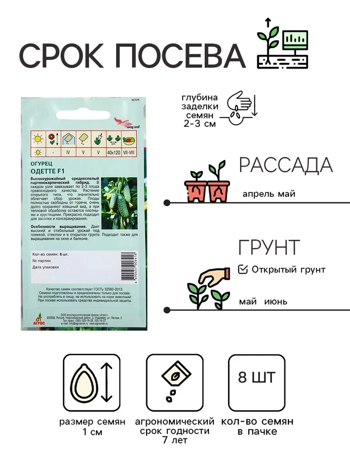 Семена Огурец"Одетте"F1 8шт* Wing Seed — Характеристики