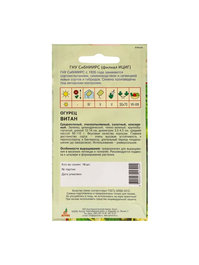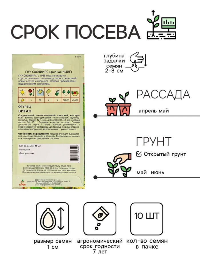 Семена Огурец"Витан"10шт* КС — Характеристики