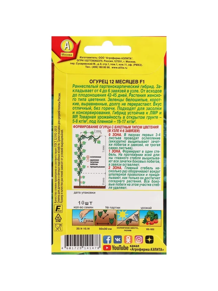 Семена огурца "12 месяцев", F1, 10 шт. — Характеристики