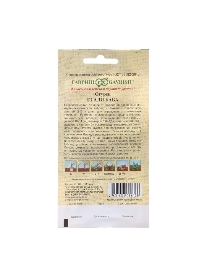 «F1 Али-Баба» — это скороспелый партенокарпический гибрид с букетным заложением завязей, у которого период от всходов до плодоношения составляет 38–46 дней. Устойчив к основным заболеваниям огурцов. Предназначен для плёночных теплиц.
