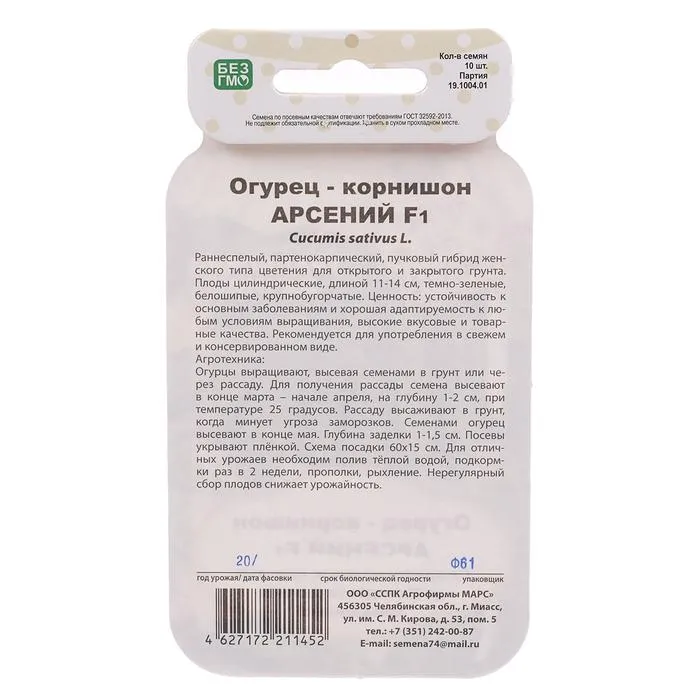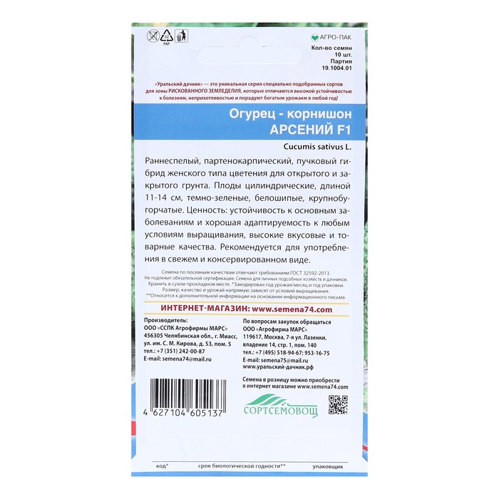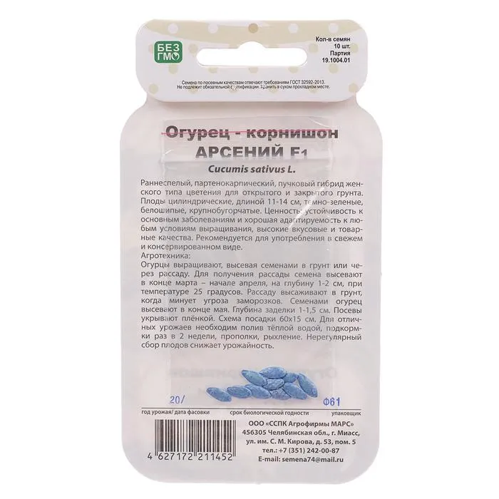 Семена огурца "Арсений", F1, 10 шт. — Характеристики