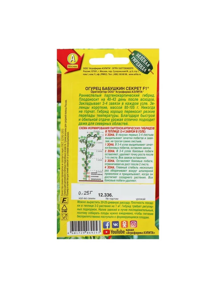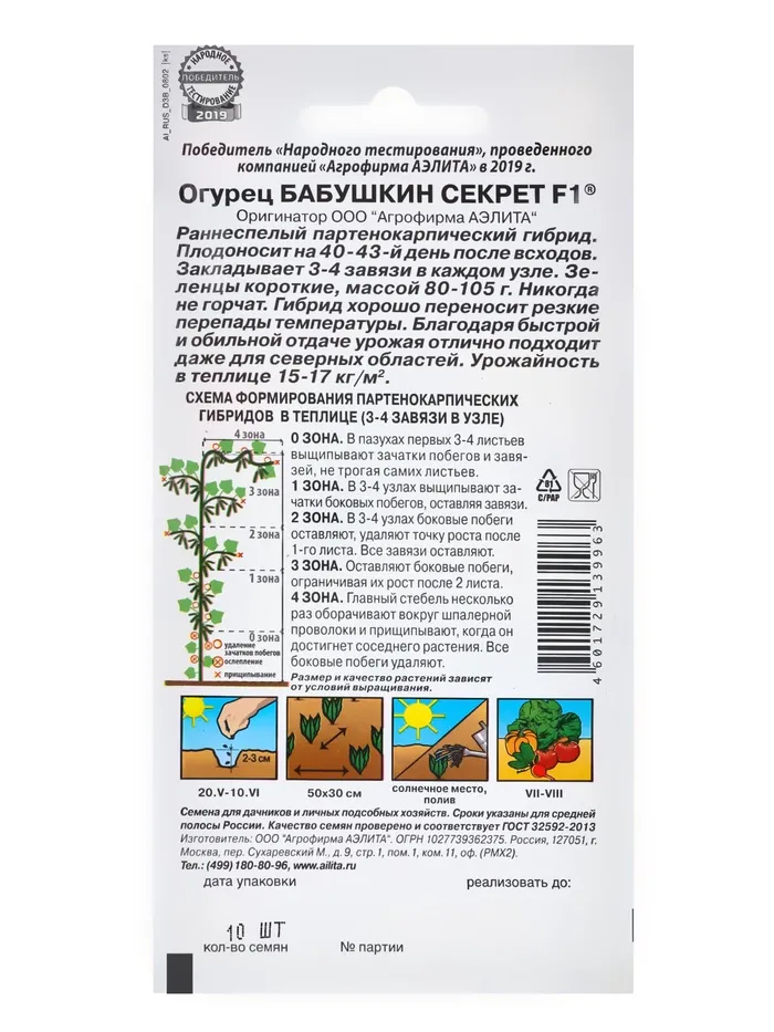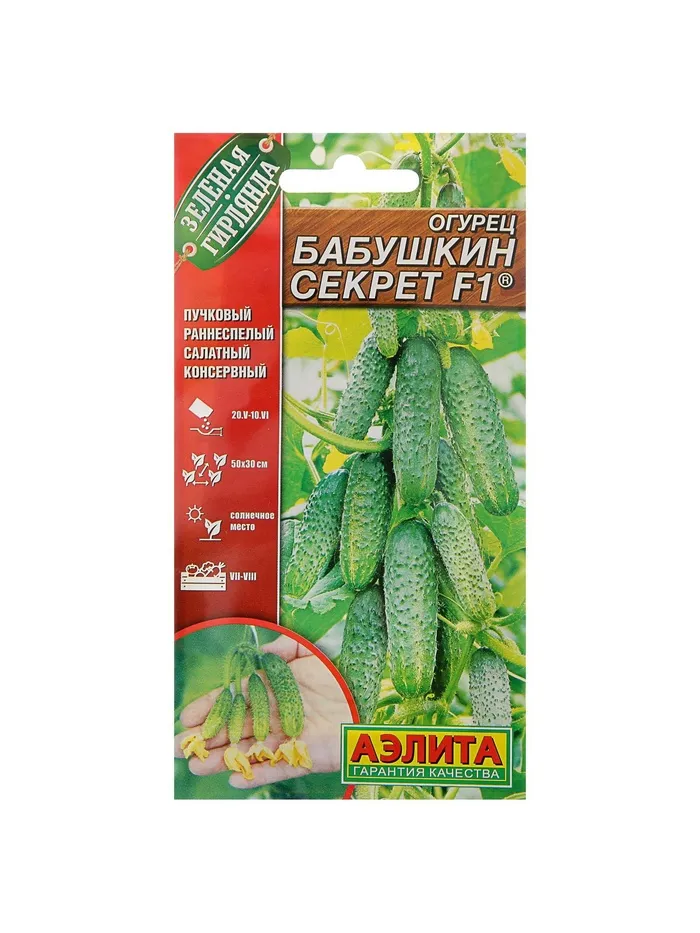 «Бабушкин секрет» — это раннеспелый партенокарпический сорт для открытого грунта. Плодоношение начинается на 45–50 день от всходов.