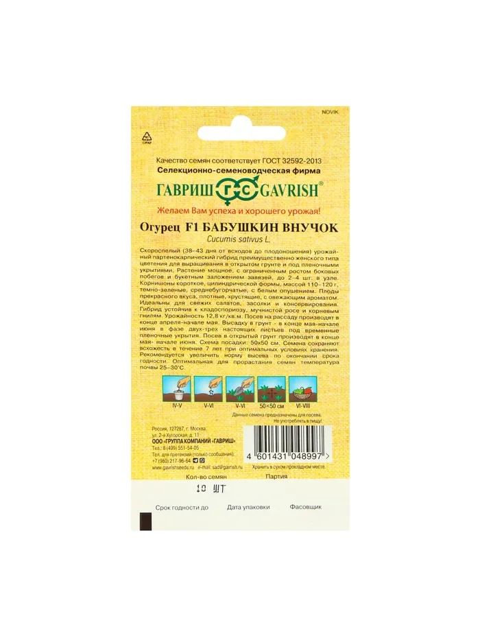Семена огурца "Бабушкин внучок", F1, 10 шт. — Характеристики