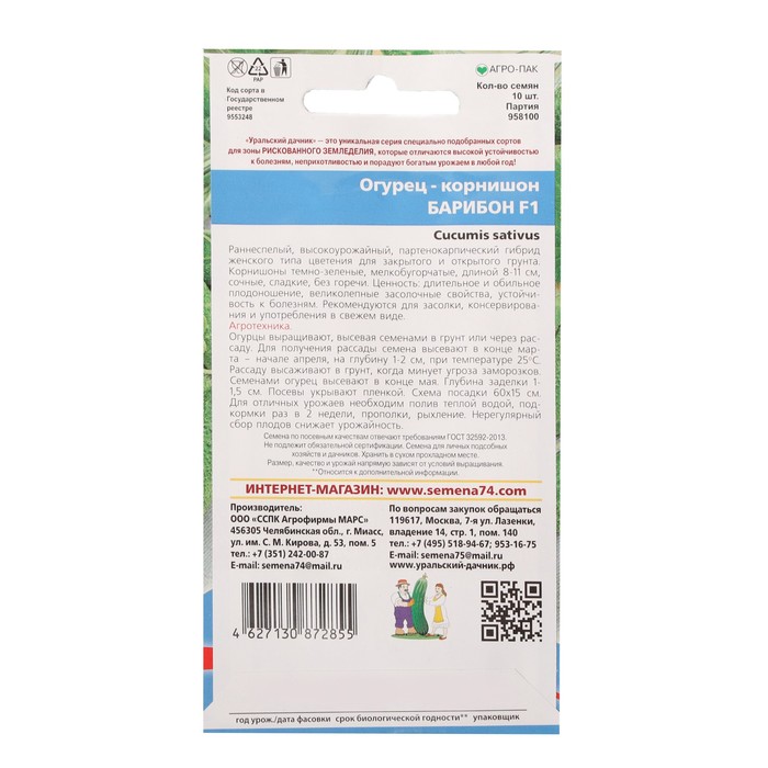 Семена огурца "Барибон", F1, 10 шт. — Характеристики