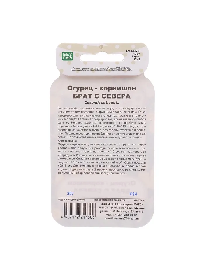 Раннеспелый, пчёлоопыляемый сорт, с преимущественно женским типом цветения и дружным плодоношением. Рекомендуется для выращивания в открытом грунте и в пленочных теплицах. Растение среднерослое, длина главного стебля 2,5-3 м. Зеленец зелёный, поверхность среднебугорчатая, опушение белое, длина 9-11 см, массой 90-115 г. Вкусовые и засолочные качества высокие, без горечи. Устойчив к болезням. Предназначен для потребления в свежем виде и для засолки. По хозяйственным качествам не уступает гибридам.