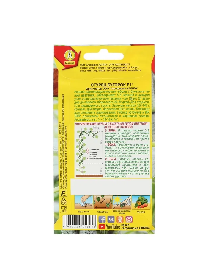 «Бугорок» — короткий цилиндрический бугорчатый гибрид массой 75–80 г. Благодаря отсутствию горчинки и бесподобному вкусу корнишоны используются в свежем, солёном и в консервированном виде. Урожайность — 16–18 кг/м².