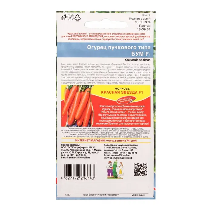 Раннеспелый (от всходов до начала плодоношения 39-44 дня) партенокарпический гибрид с обильным пучковым плодоношением для открытого и защищенного грунта. Растение генеративного типа, одновременно в узлах формируется не менее 5 шт. великолепных огурчиков, при правильном формировании образуется целый пучковый бум. Зеленцы цилиндрические, длиной 9-11 см, диаметром 3-3,5 см, насыщенного зелёного цвета, среднебугорчатые не перерастают, прекрасного товарного вида, без горечи и пустот. При солении и мариновании сохраняют форму, плотность и упругость. Отличительной особенностью является способность переносить похолодания без потери интенсивности плодоношения.