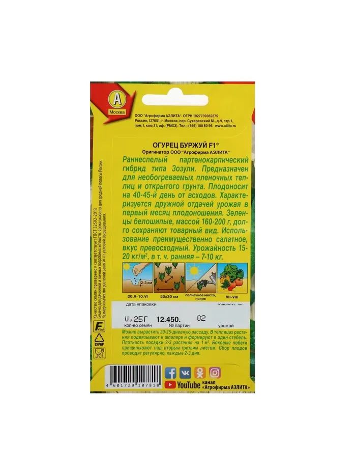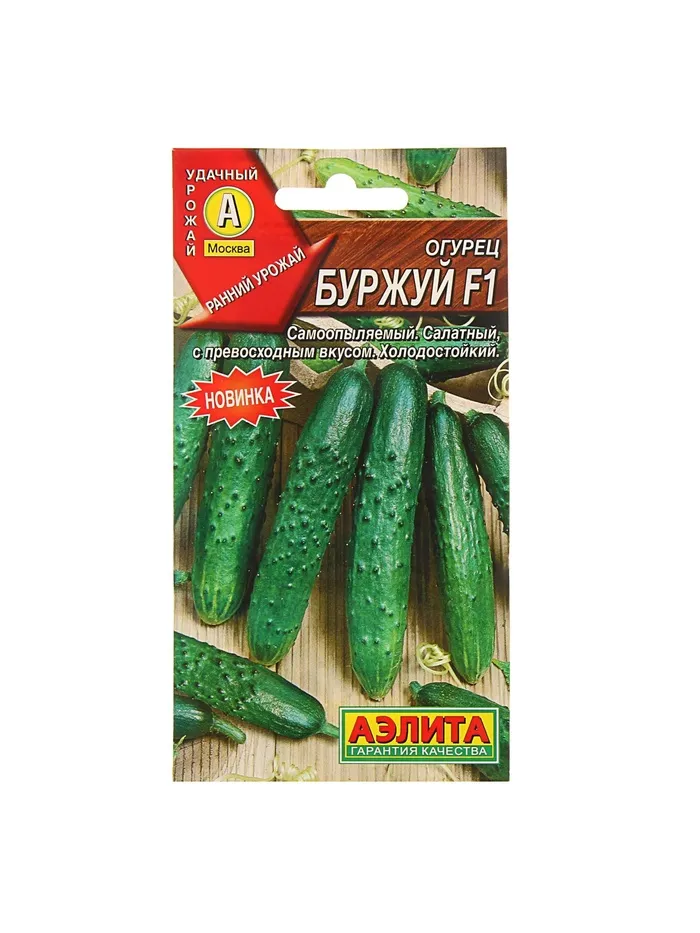 «Буржуй» — крупный редкобугорчатый гибрид массой 160–200 г. Хорошо подходит для использования в салатах и засолки. Урожайность — 15–20 кг/м².