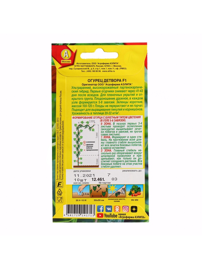 Семена огурца "Детвора", F1, 10 шт. — Характеристики