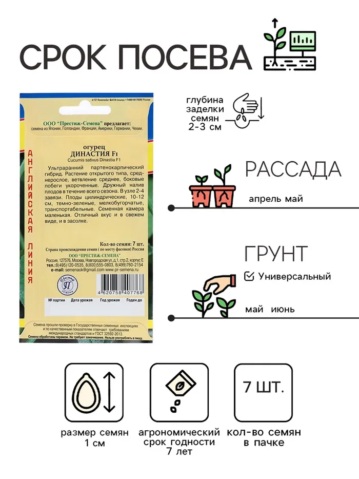Семена огурца "Династия", F1, 7 шт. — Характеристики
