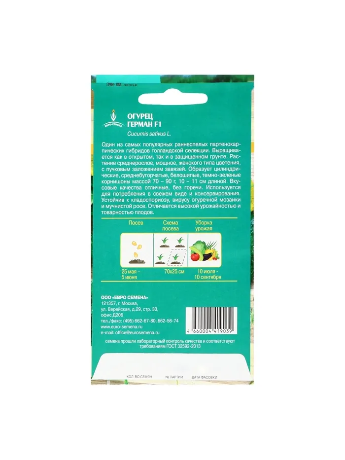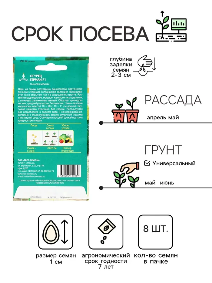 Семена огурца "Герман", F1, 8 шт. — Характеристики
