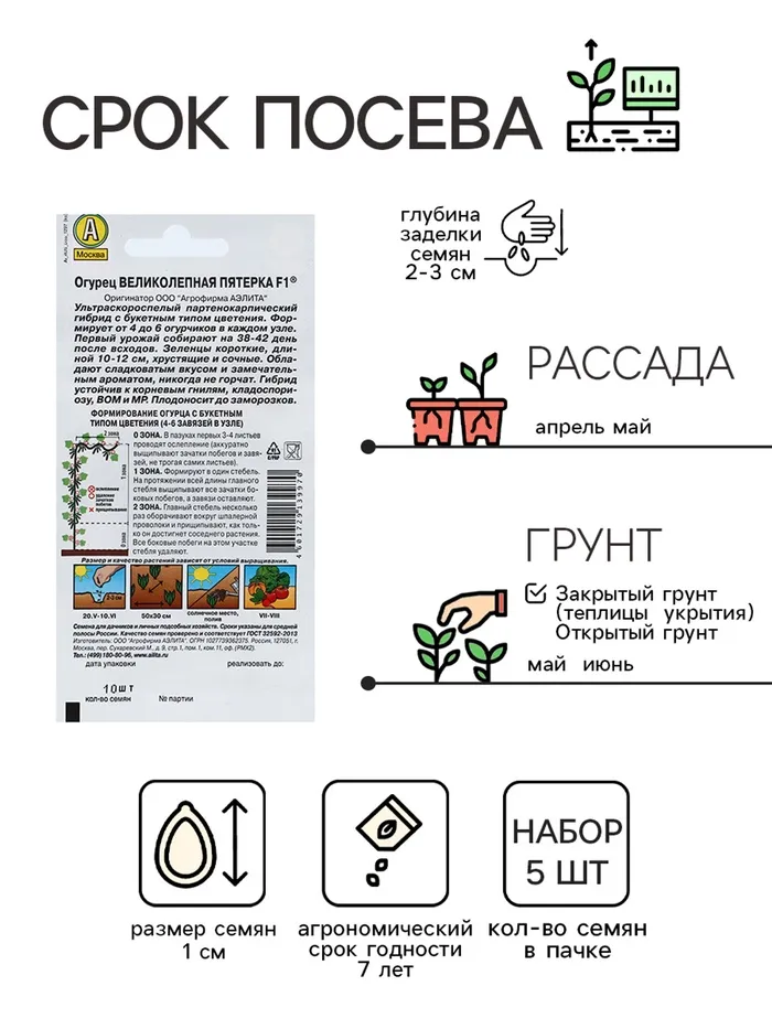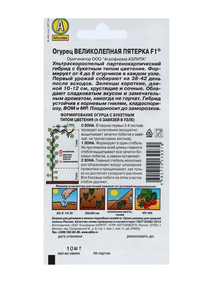 Семена огурца "Великолепная пятерка", F1,набор 5 шт — Характеристики