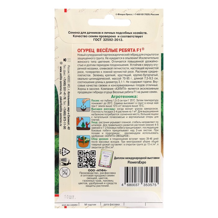 Очень ранний партенокарпический гибрид для открытого и защищенного грунта, самоопыляемый. Отличается повышенной урожайностью и долгим периодом плодоношения. Устойчив к вирусу огуречной мозаики, оливковой пятнистости, настоящей мучнистой росе, толерантен к ложной мучнистой росе. Растение среднеплетистое. Зеленец крепкий, хрустящий, ярко-зеленого цвета, крупнобугорчатый, овально-цилиндрический, масса 70-95 г, длина 7,5-9,5 см, соотношение длины к диаметру 3,1:1. Не содержит горечи. Вкусовые качества свежих и консервированных плодов отличные. Можно выращивать в домашних условиях.