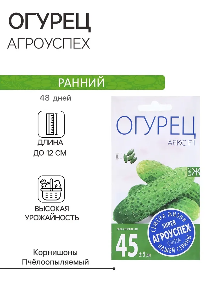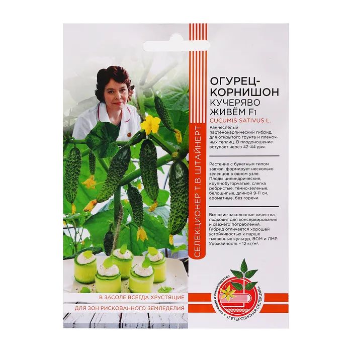 Ранний партенокарпический гибрид для о/г и пленочных теплиц. Вступает в плодоношение на 42-45 день от всходов. Цветение букетное, заложение завязей пучковое, по 5-8 шт. (до 12) в каждом узле. Зеленцы массой 75-85 г, опушение белое. Вкус великолепный. Гибрид устойчив к МР, корневым гнилям, клодоспориозу. Урожайность 6-8 кг с растения.