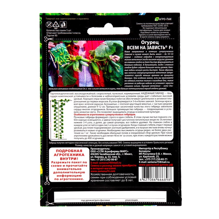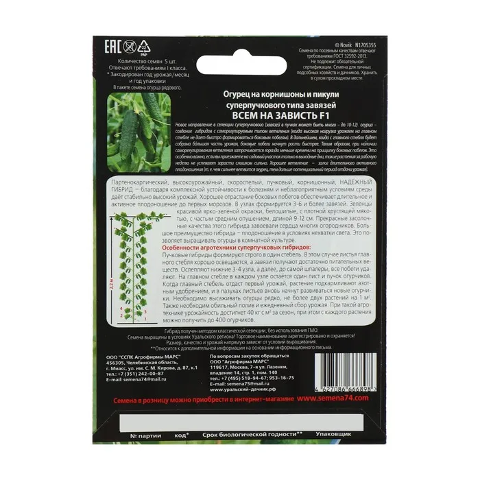 Партенокарпический скороспелый сорт «Всем на зависть» даёт стабильно высокий урожай благодаря устойчивости к болезням и неприхотливости к условиям среды.