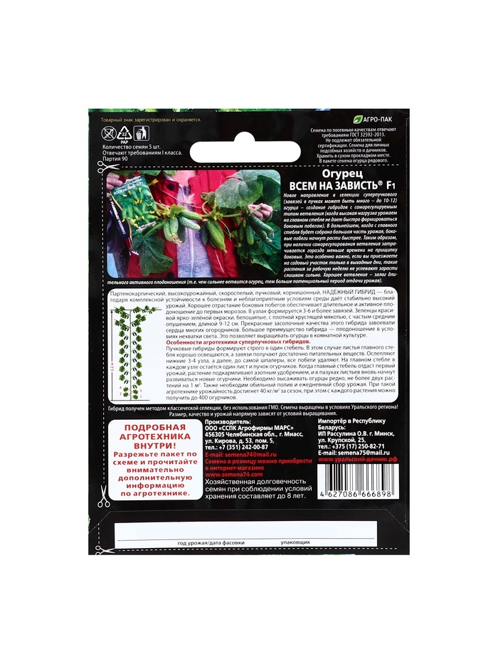 Семена огурца "Всем на Зависть", набор 5 шт — Характеристики