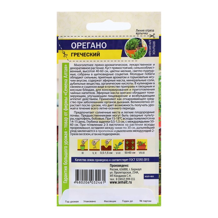 Семена Орегано «Греческий», 0.05 г, «Семена Алтая» — Характеристики