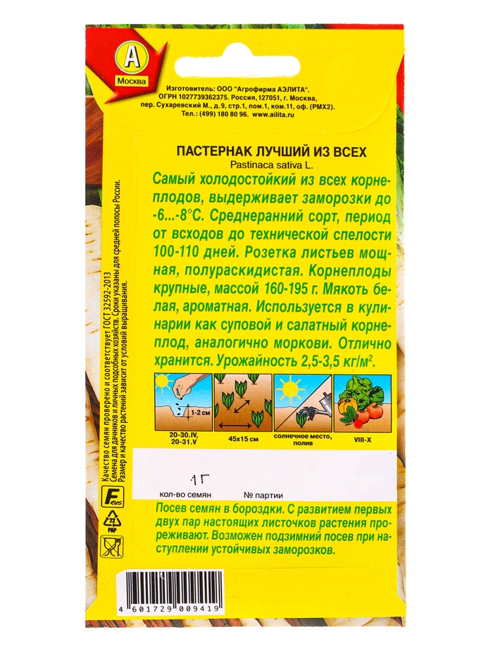 Семена Пастернак Лучший из всех, Ц/П,1 г — Характеристики