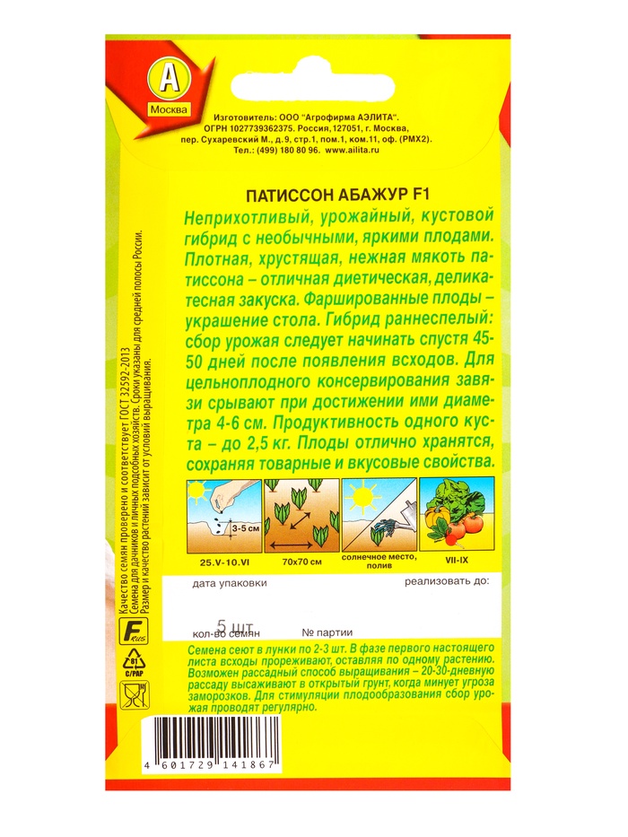 Семена Патиссон Абажур F1 Самое самое, Ц/П,5 шт. — Характеристики