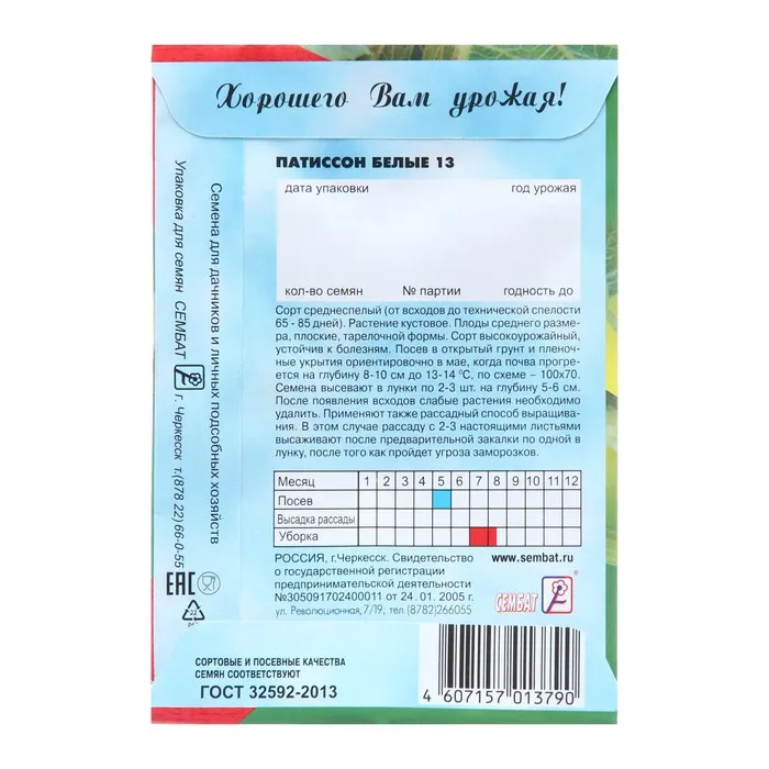 Семена Патиссон "Белые", 13", 1 г — Характеристики