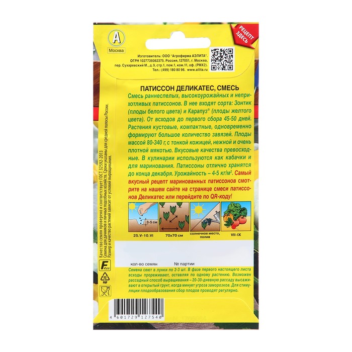 Семена Патиссон Деликатес, смесь Блюда стран мира Ц/П 1г — Характеристики