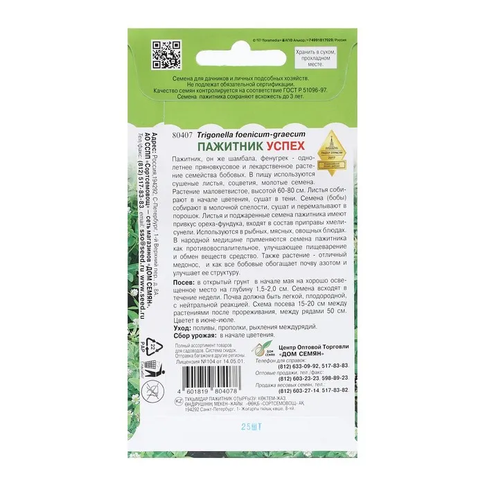 Листья и поджаренные семена пажитника имеют привкус ореха-фундука, входят в состав приправы хмели-сунели. Используются в рыбных, мясных, овощных блюдах. В народной медицине применяются семена пажитника как противовоспалительное, улучшающее пищеварение и обмен веществ средство.