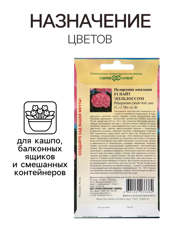 Популярное многолетнее комнатное растение из семейства Гераниевые. В пору обильного цветения герань придает окнам праздничный вид. Формирует объемный и компактный кустик высотой 35 см, диаметром 25 см. Этот сорт уникален благодаря декоративным коричневым листьям с тонкой зеленой каймой по краю. Особенно эффектно коричневолистные сорта выглядят в белой цветочной таре. Цветки светло-розовой окраски с переходом в карминно-розовую, образуют крупные, шаровидные соцветия. При тщательном уходе может цвести весь год. Пеларгония светолюбива, неприхотлива в культуре, легко переносит недостаток влаги. Размещают растение на солнечных восточных и западных окнах. В теплое время года любит обильный, частый полив. Зимой, в зависимости от температуры, поливают умереннее. Подкармливают растение минеральными удобрениями, обогащенными калием. Для получения цветущих растений к началу лета посевы производят с декабря по февраль, используя в качестве субстрата чистый торф или смесь торфа с песком. Для комнатного использования высевают в марте-апреле. Всходы обычно появляются через 2-3 недели после посева. В фазе двух-трех настоящих листочков растения пикируют в горшки. Для лучшего кущения рассаду прищипывают над пятым - шестым листом. Летом пеларгонию желательно выносить на свежий воздух, а зимой устанавливать в прохладной светлой комнате с температурой 10-12 °C. Геранями озеленяют балконы, веранды, лоджии. Их используют в цветочных композициях в полутенистых участках сада.