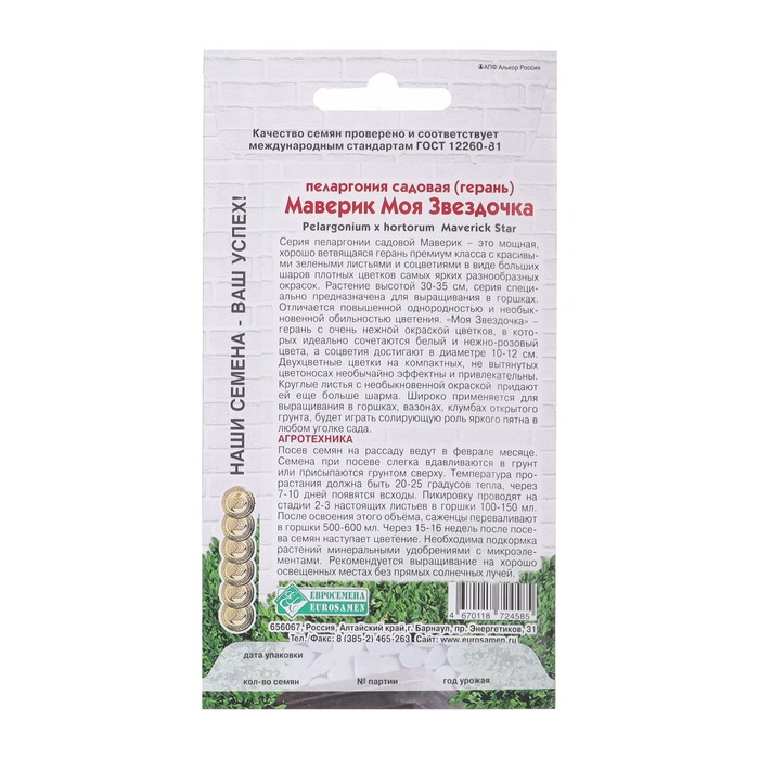 Семена пеларгония садовая маверик «Моя Звездочка», 3 шт. — Характеристики