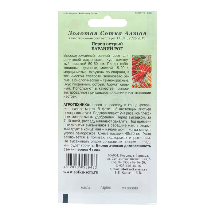 Семена Перец «Бараний рог острый», раннеспелый, 0.2 г — Характеристики
