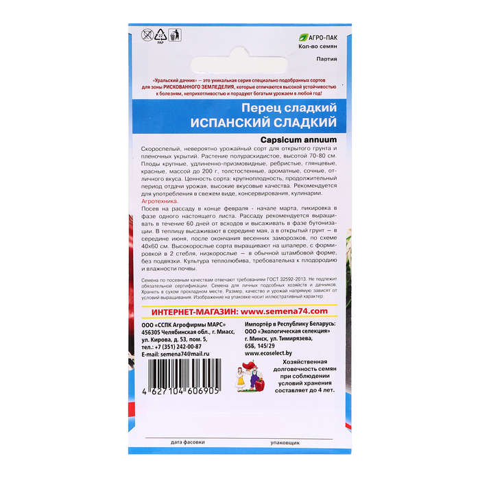 Семена Перец "Испанский Сладкий", 20 шт — Характеристики