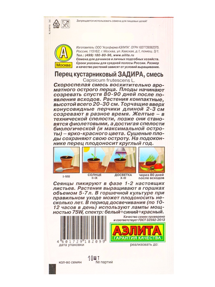 Семена Перец кустарниковый Задира, смесь Урожай дома, Ц/П,10 шт. — Характеристики