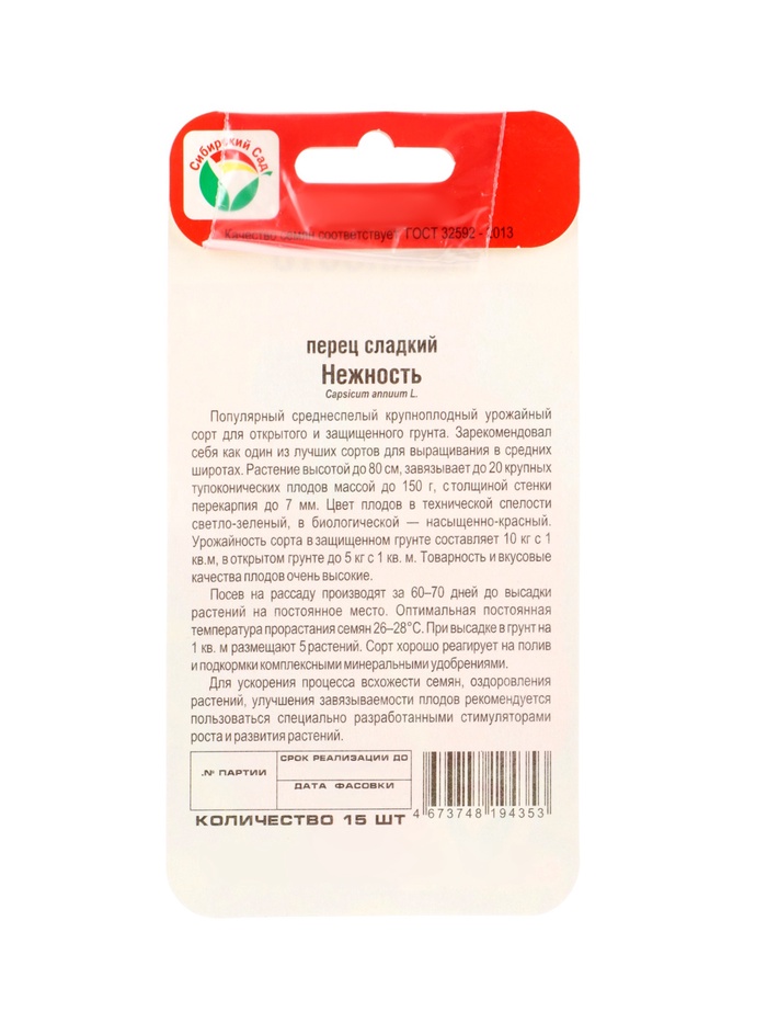 Плоды крупные, конусовидные с тупой верхушкой, в технической спелости светло-зеленые, в биологической – красные, массой 100-150 г, с тонкой кожицей, мякоть нежная, сочная.