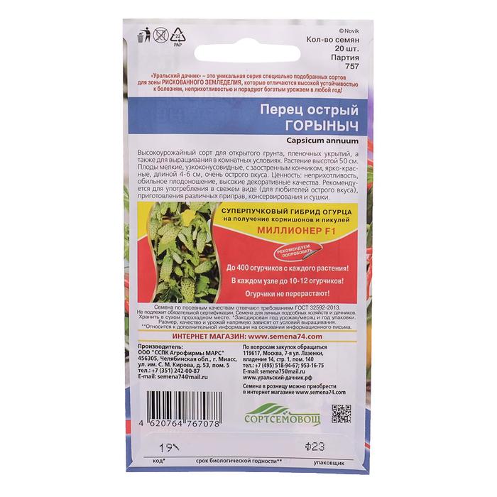 Семена Перец острый "Горыныч", 20 шт — Характеристики