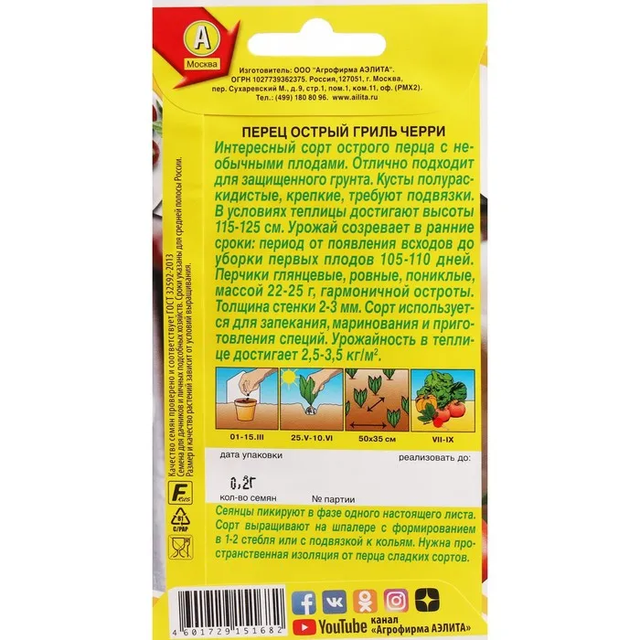 Интересный сорт острого перца с необычными плодами. Отлично подходит для защищенного грунта. Кусты полураскидистые, крепкие, требуют подвязки. В условиях теплицы достигают высоты 115-125 см. Урожай созревает в ранние сроки: период от появления всходов до уборки первых плодов 105-110 дней. Перчики глянцевые, ровные, пониклые, массой 22-25 г, гармоничной остроты. Толщина стенки 2-3 мм. Сорт используется для запекания, маринования и приготовления специй. Урожайность в теплице достигает 2,5-3,5 кг/м2.
