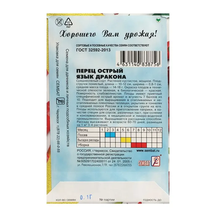 Семена сеют на рассаду в конце февраля – начале марта. После появления всходов оптимальная Т для выращивания рассады днем – 26-28°С, ночью – 18-22°С. Пикируют в фазе 1-2 настоящих листьев. За две недели до высадки в грунт нужно начинать закаливание рассады. В неотапливаемые теплицы рассаду высаживают в мае по схеме 60*40см, в открытый грунт в конце мая – начале июня, когда минует угроза возвратных заморозков, по схеме 45*45см. Перец предпочитает легкую, рыхлую, богатую органическими веществами почву с нейтральной реакцией. Хорошие предшественники – лук, морковь, зернобобовые, капуста.