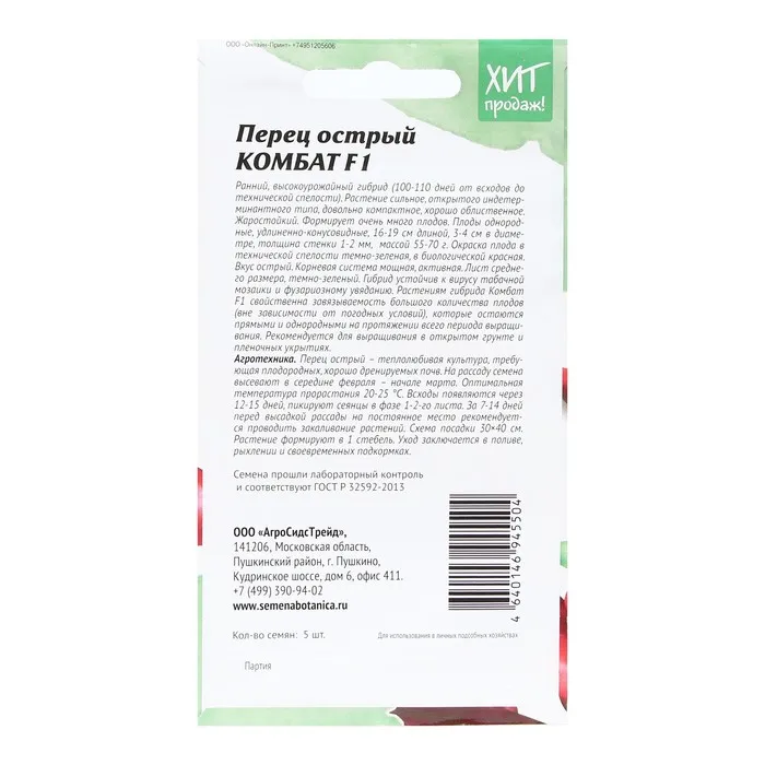Комбат F1 – среднеранний гибрид перца (100-110 дней от всходов до технической спелости, 125-130 дней до биологической спелости). Рекомендуется для выращивания в пленочных теплицах и открытом грунте. Корневая система мощная, активная. Растение индетерминантного типа, довольно компактное, хорошо облиственное. Лист среднего размера темно-зеленый.